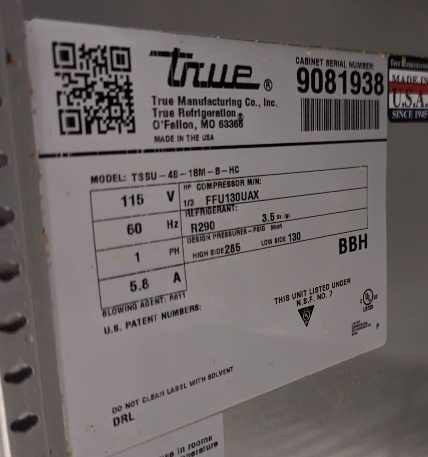 48" X 34" X 36" MOD#: TSSU-48-18-B-HC. 115V, 60HZ, 5.8A, SINGLE PHASE**ALL ITEMS MUST BE REMOVED BY 5PM MONDAY, NOVEMBER 6TH, 2023. ALL REMAINING ITEMS WILL BE SUBJECT TO A $6.00 PER DAY STORAGE CHARGE. ANY ITEMS REMAINING AFTER MONDAY, NOVEMBER 20TH, 2023 WILL BE CONSIDERED FORFEITED. NO REFUNDS WILL BE ISSUED FOR FORFEITED ITEMS.** TO SCHEDULE A PICK UP APPOINTMENT CLICK HERE