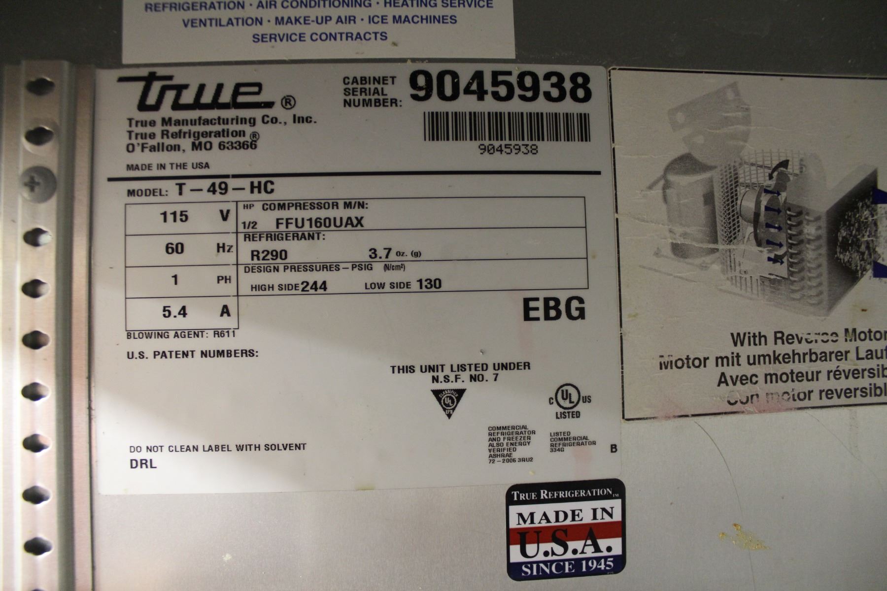 M# T-49-HC, 115V, 5.4A, R290. 54" X 30" X 84" **ALL ITEMS MUST BE REMOVED BY 5PM MONDAY, SEPTEMBER 12TH, 2022. ALL REMAINING ITEMS WILL BE SUBJECT TO A $6.00 PER DAY STORAGE CHARGE. ANY ITEMS REMAINING AFTER MONDAY, SEPTEMBER 26TH, 2022 WILL BE CONSIDERED FORFEITED. NO REFUNDS WILL BE ISSUED FOR FORFEITED ITEMS.** TO SCHEDULE A PICK UP APPOINTMENT CLICK HERE