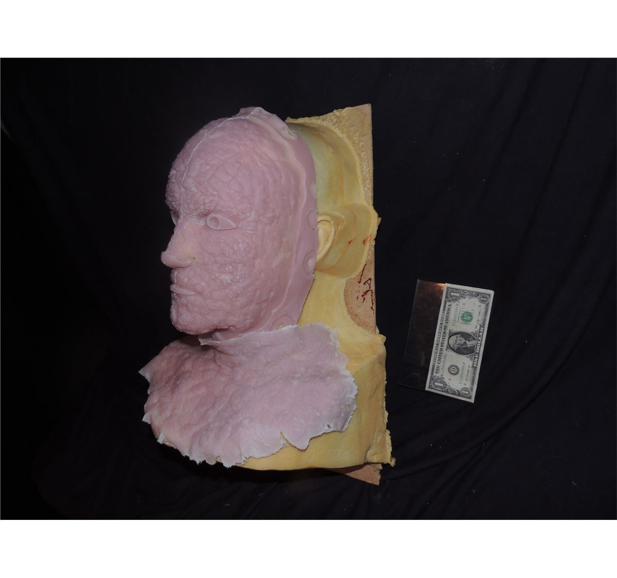 This is a Hero Silicone Make Up for a burned Vampire in TRUE BLOOD. The appliances are pinned on to a rigid foam life cast of the actor. I believe this is the other half of the other one offered.