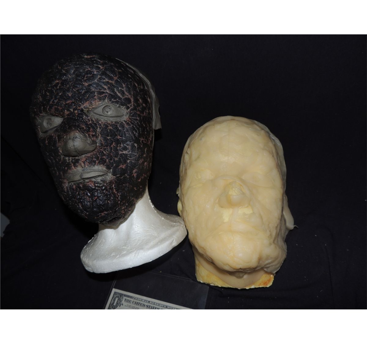 These are a set of unused Hero silicone, and foam stunt burned Vampire faces from TRUE BLOOD. The stunt is painted from production. The silicone is on a life cast, but it is very delicate.
