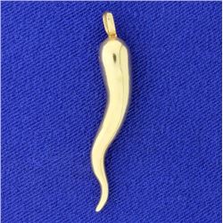 In 14K yellow gold, it is 1 1/4 inches long with the bale. 3.5g