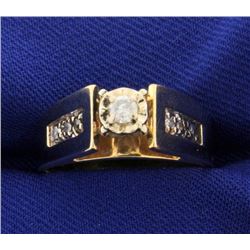 In 14k Yellow Gold. The diamond is a high quality brilliant cut and weighs 0.07 carats with SI1 clarity and H color. Size 6. 3.0g