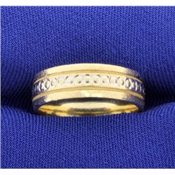 In 10k white and yellow gold. Contains .2 ct of high quality marquise and round brilliant diamonds - SI to I clarity/I color. Size 5. 3.2g