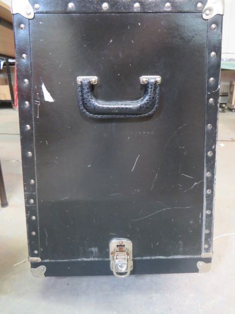 TRUNK (INSTRUMENT CARRIER) *TAPERS WIDER AT THE BOTTOM: 18" X 16.5" TOP: 17.5" X 13.5"* (ON CASTORS) *LIFT OFF LID WITH CLASPS*