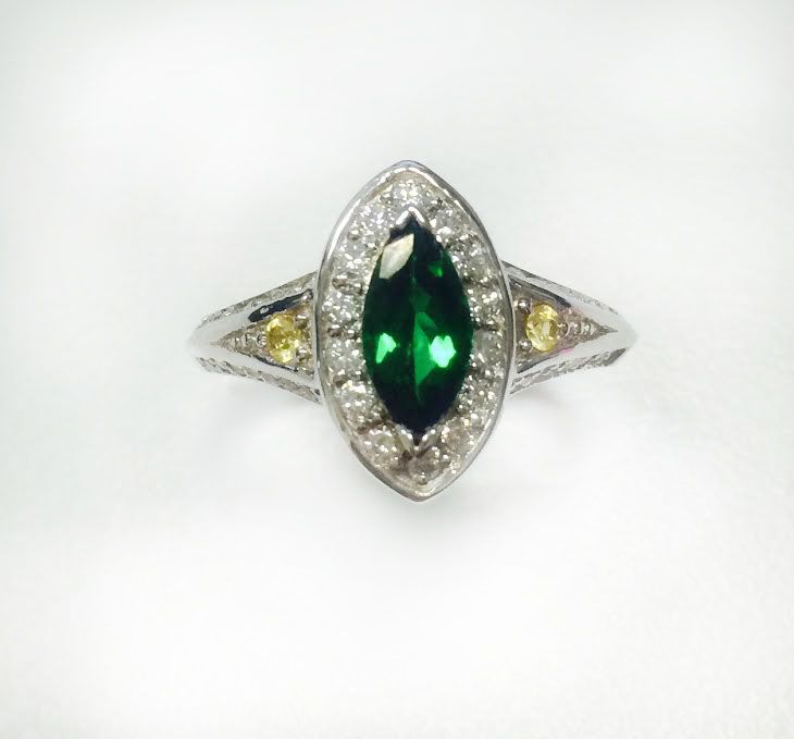 TSAVORITE 0.86CT, 14K W/G RING 4.38GRAM / DIAMOND 0.42CT / Y.SAPP 0.07CT