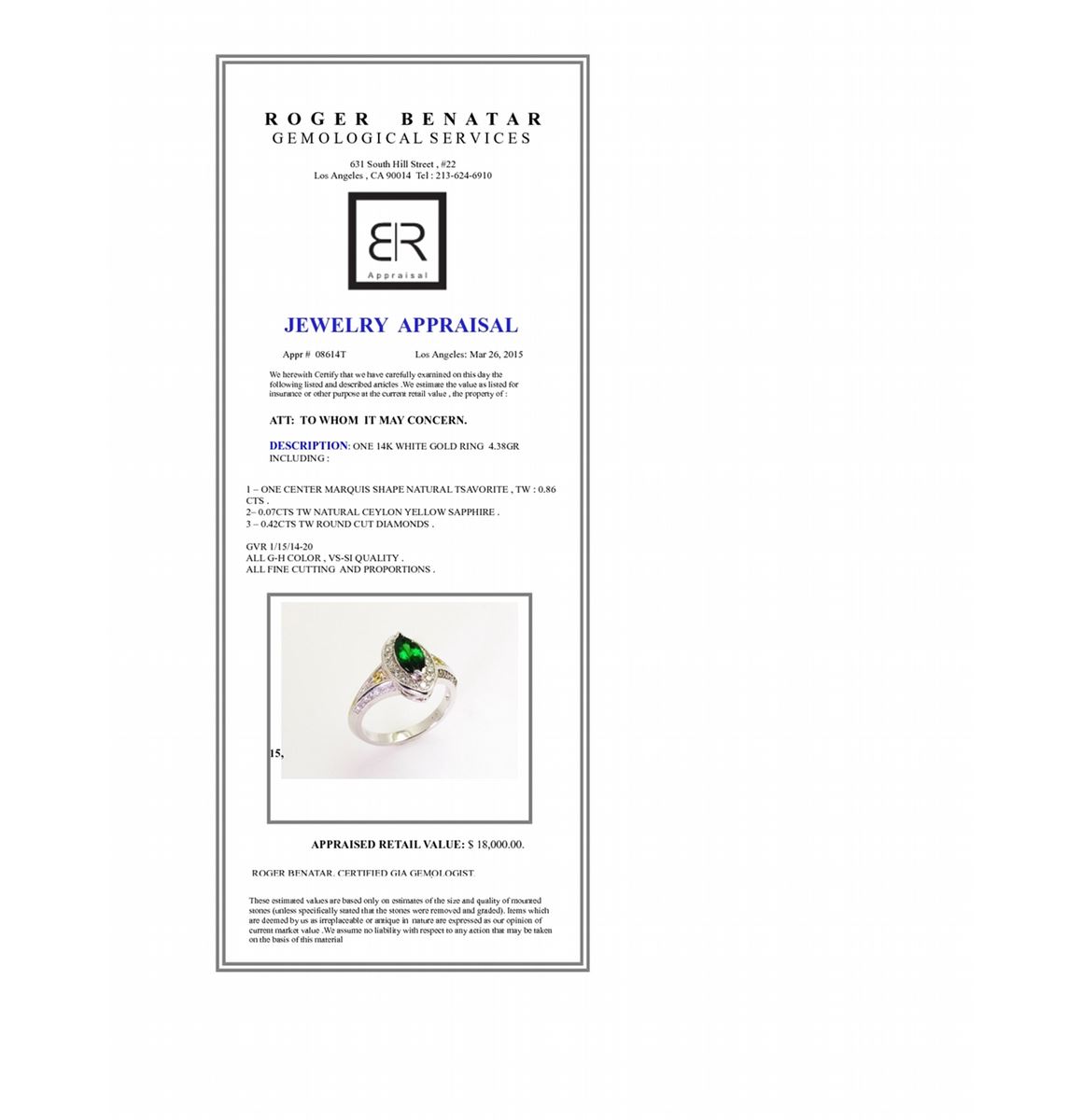 TSAVORITE 0.86CT, 14K W/G RING 4.38GRAM / DIAMOND 0.42CT / Y.SAPP 0.07CT