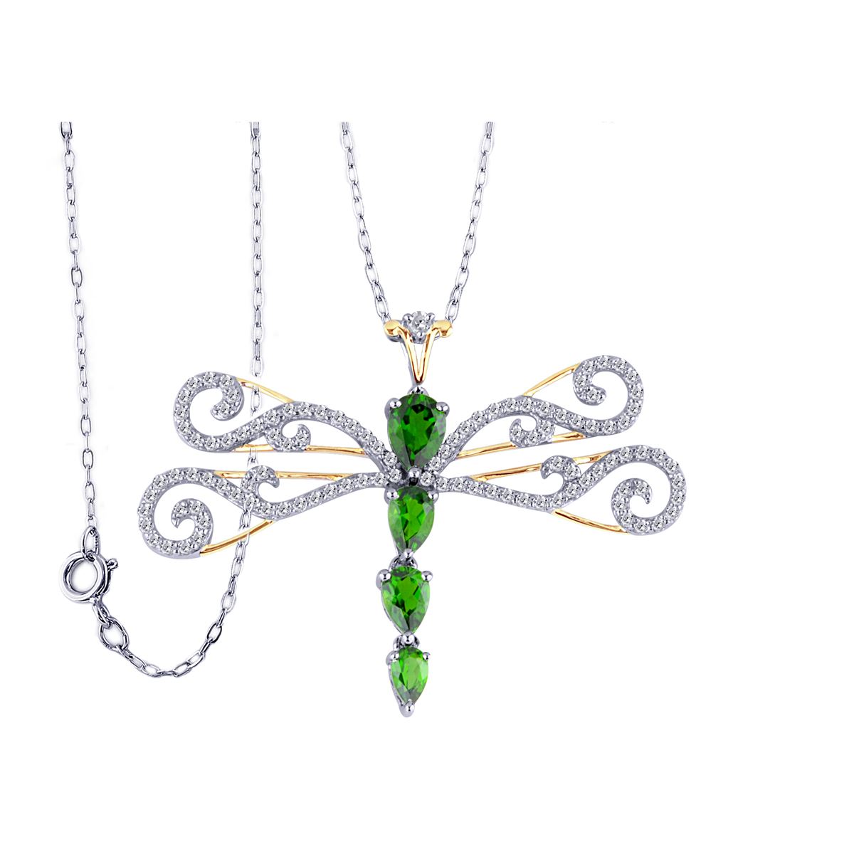 TT SS/YGPLT CHDI / WHITE TOPAZ DRAGONFLY PENDANT (#8394MUL) TOTAL CT WEIGHT 2.559