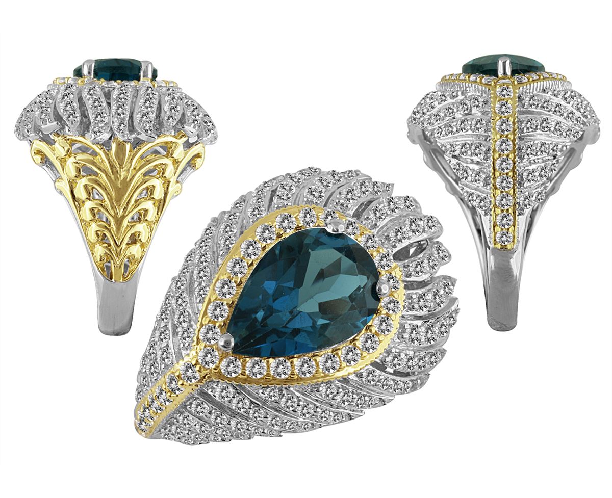 TT SS/YGPLT LONDON BLUE TOPAZ / WHITE TOPAZ RING - Size 7 (#10193MUL) TOTAL CT WEIGHT 4.671