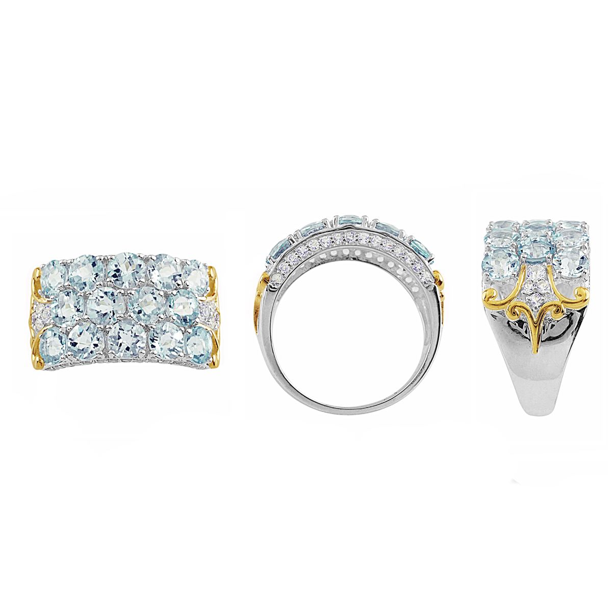 TT STERLING SILVER GOLDPLATED AQUAMARINE / WHITE TOPAZ RING - Size 7 (#9971MUL) TOTAL CT WEIGHT 3.15