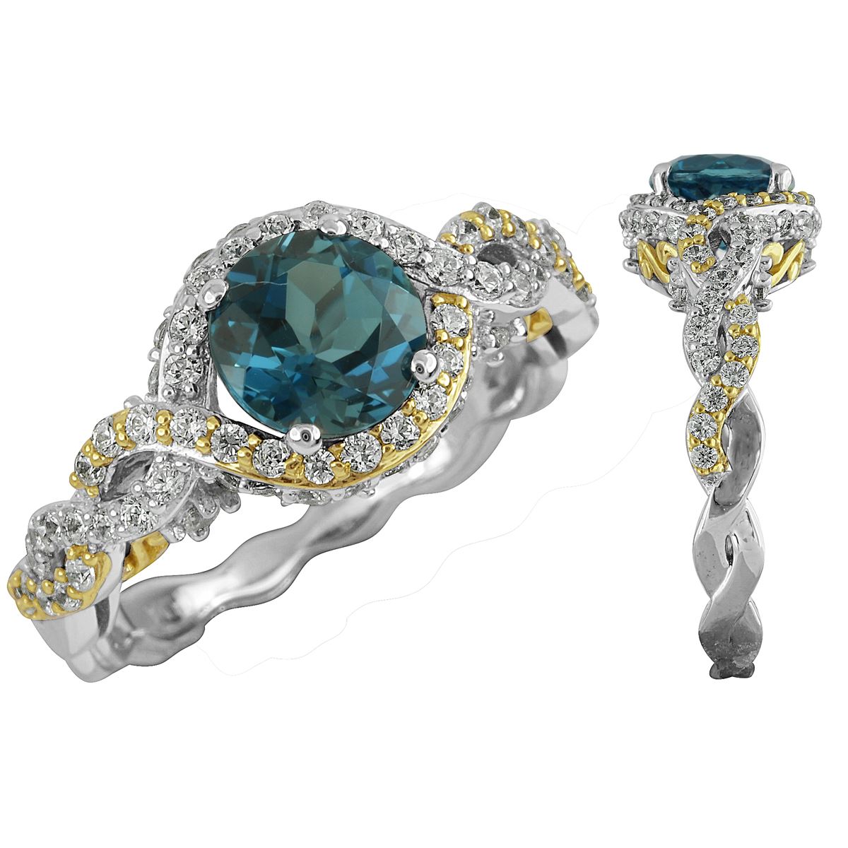 TT STERLING SILVER GOLDPLATED LONDON BLUE TOPAZ / WHITE TOPAZ RING - Size 7 (#10038MUL) TOTAL CT WEIGHT 2.091