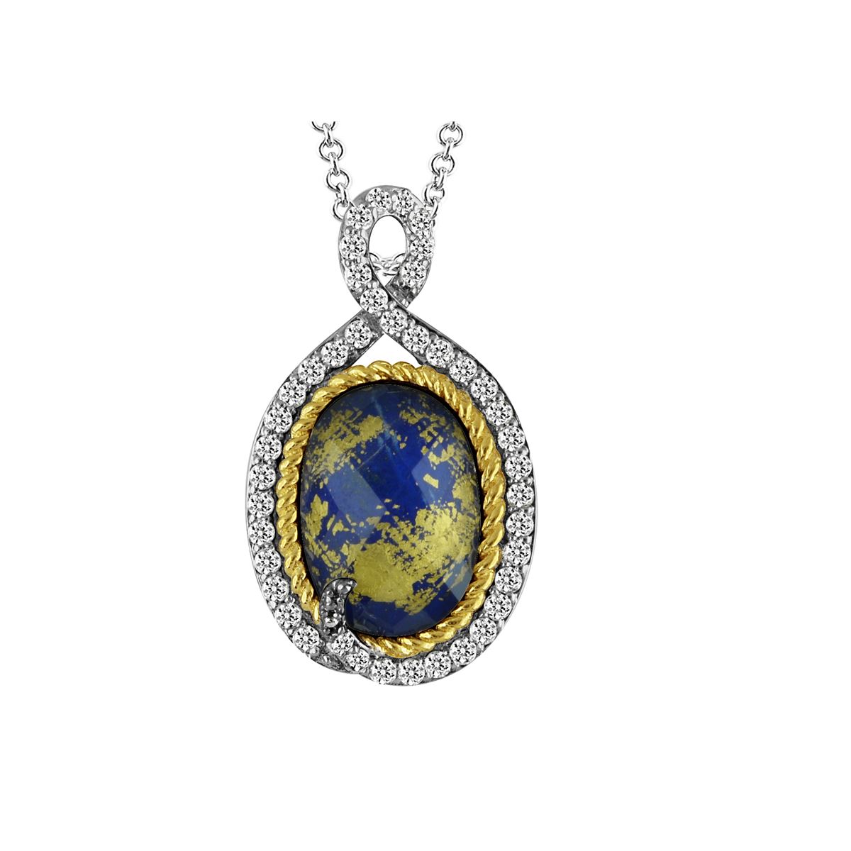 TT STERLING SILVER GOLDPLATED RC/GOLD LEAF/LAPIS TRIPLET / WHITE TOPAZ PENDANT (#10194MUL) TOTAL CT WEIGHT 5.814