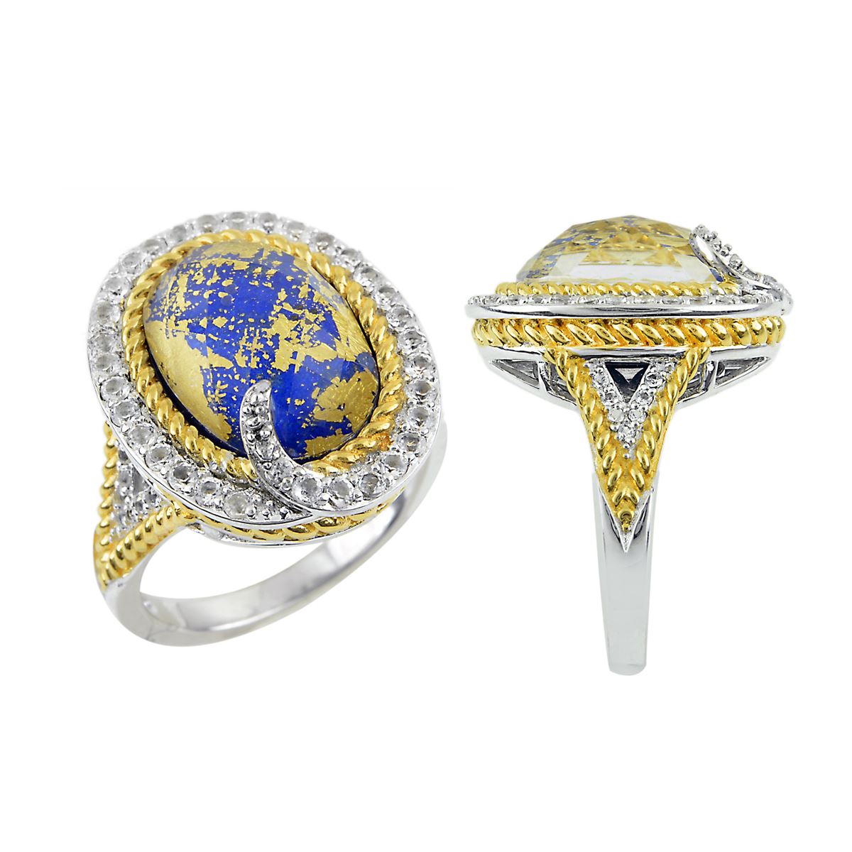 TT STERLING SILVER GOLDPLATED RC/GOLD LEAF/LAPIS TRIPLET / WHITE TOPAZ RING - Size 7 (#10194MUL) TOTAL CT WEIGHT 5.7225