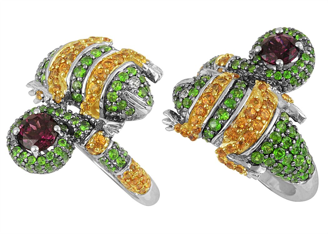 TT STERLING SILVER GOLDPLATED RHOD / CHDI / SPESS / WHITE TOPAZ RING - Size 7 (#10199MUL) TOTAL CT WEIGHT 2.581