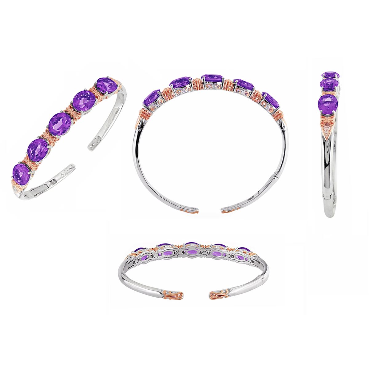 TT STERLING SILVER PINK GOLD PLATED AMETHYST / WHITE TOPAZ BANGLE (#4239MUL) TOTAL CT WEIGHT 7.306