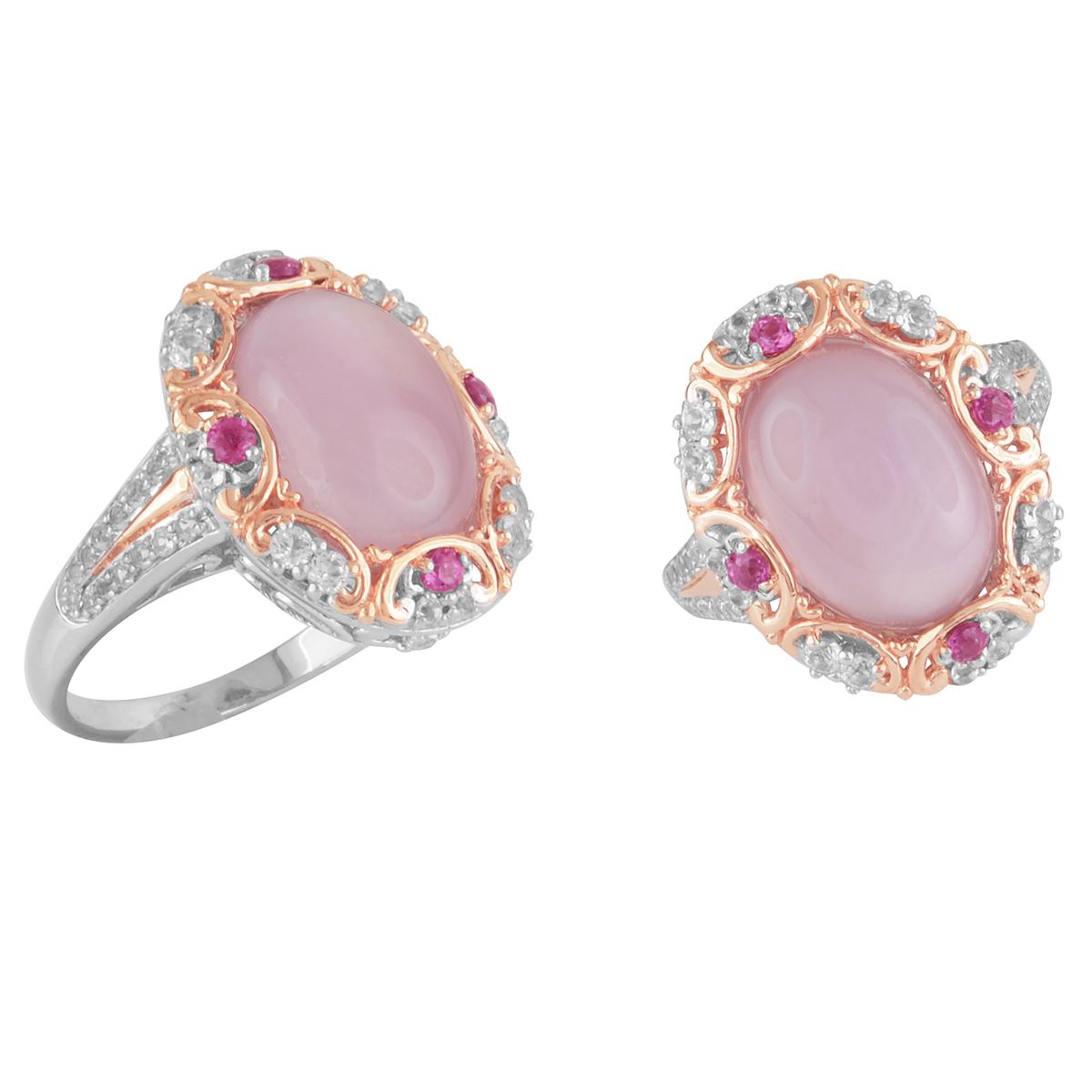 TT STERLING SILVER PINK GOLD PLATED RSDEFRA/PNK MOTHER-OF-PEARL DBLT / RH / WHITE TOPAZ RING - Size 7 (#10024MUL) TOTAL CT WEIGHT 6.092