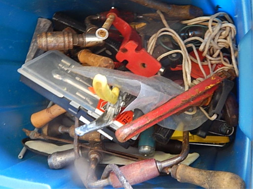TUB OF VINTAGE DRILLS, BRACES AND OTHER