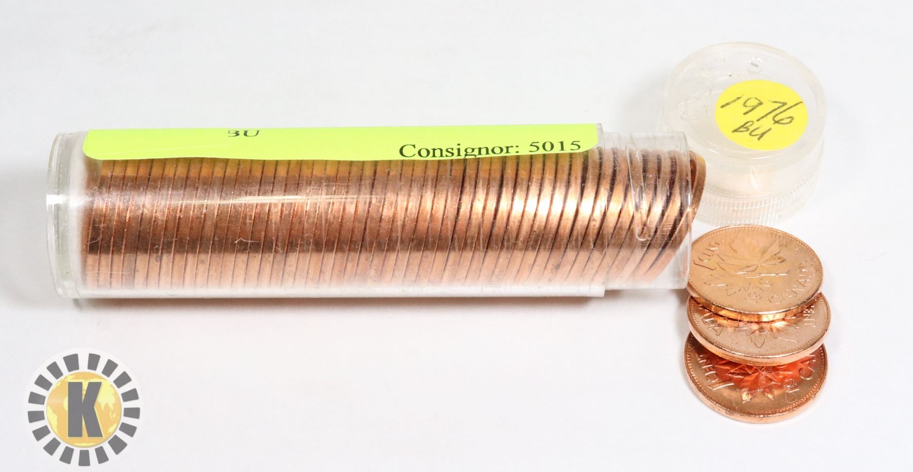 TUBE OF 1976 CANADIAN PENNIES MARKED BU