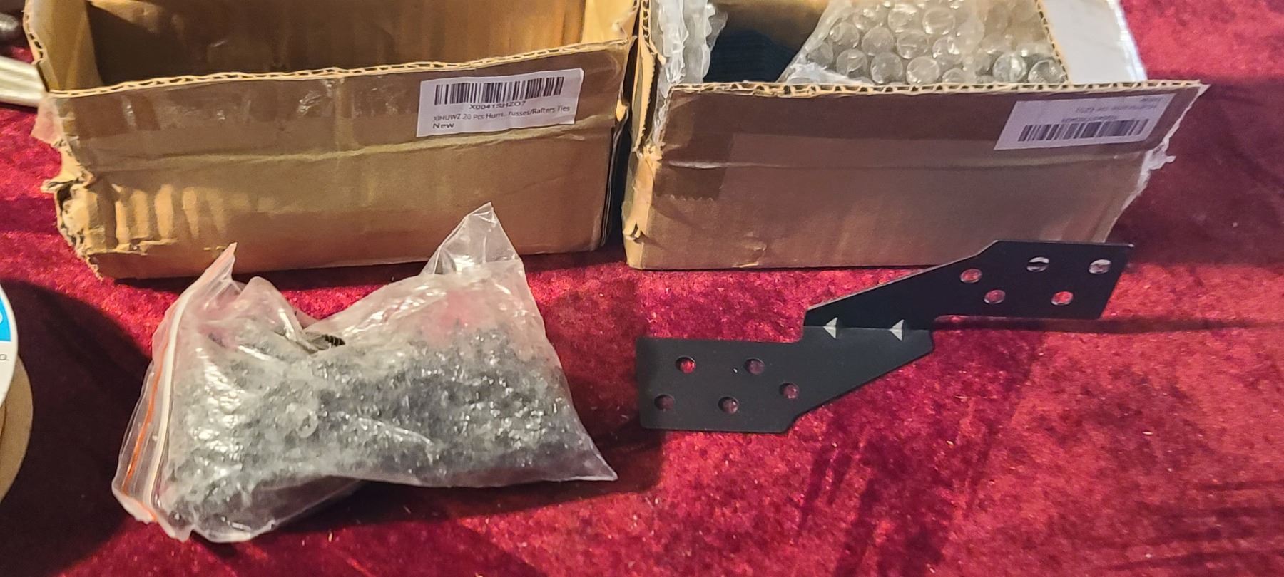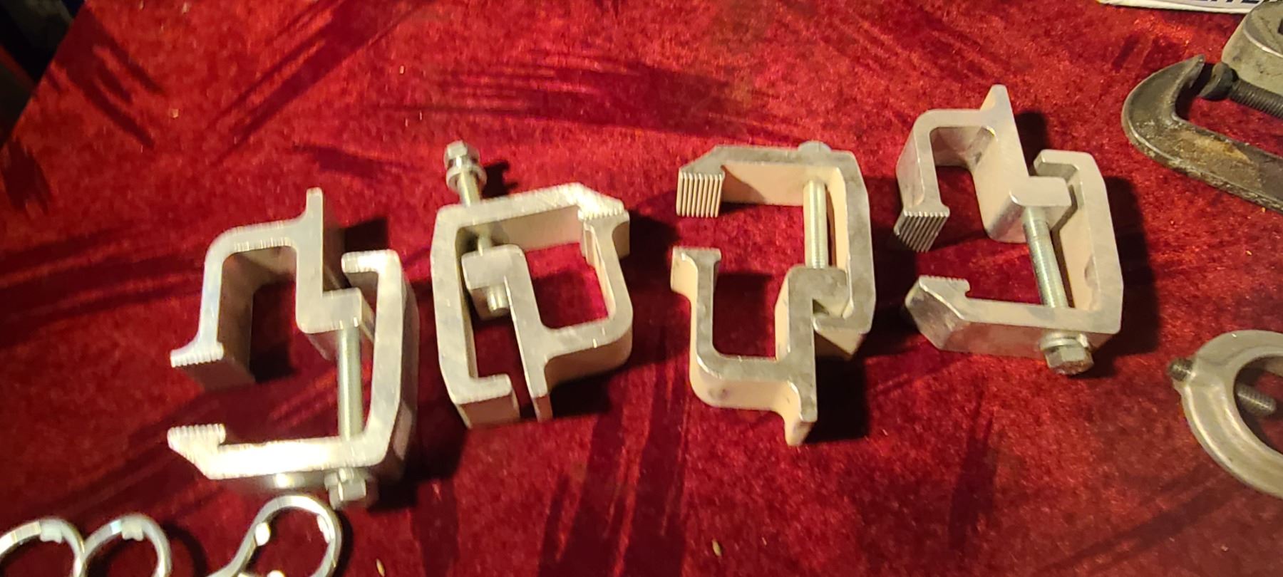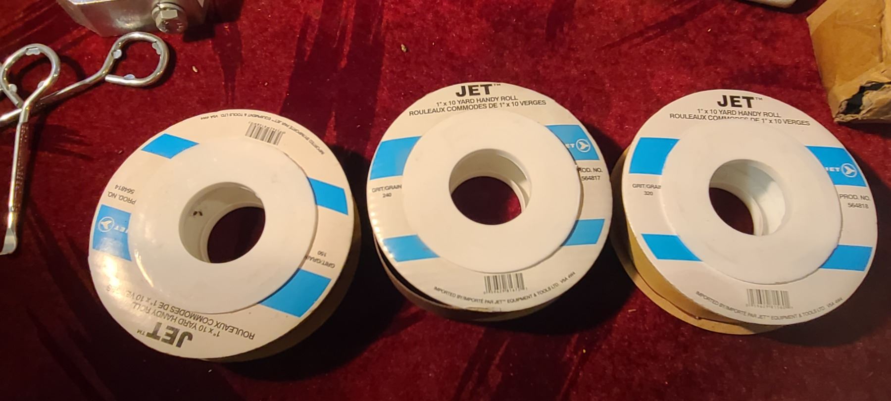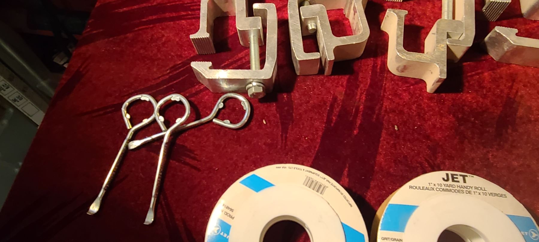 TUCK CANOPY CLAMPS, THREE ROLLS OF SAND PAPER, BRACKETS, RIVETS AND RATCHET TIS