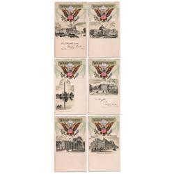 RAPHAEL TUCK & SONS "HERALDIC" POSTCARD SET. Features landmarks of Washington, D.C. Marked on lower right of face. Complete set with number 3000 to 3009. One has 1908 postmark on reverse.