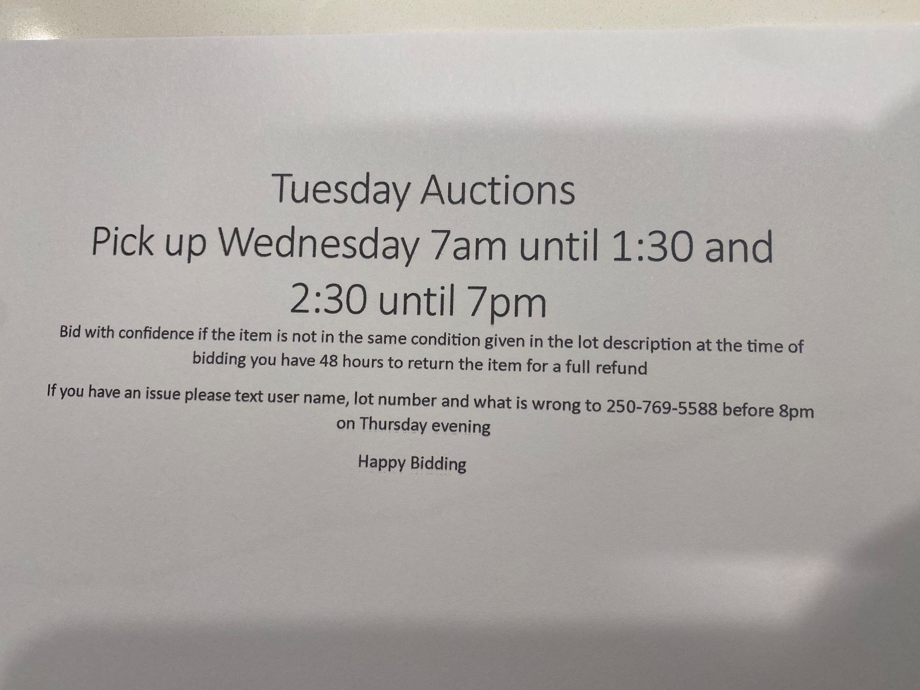 All purchases must be paid for on auction day unless doing an absentee bid. There is a 18 percent buyers premium added to all successful bids.