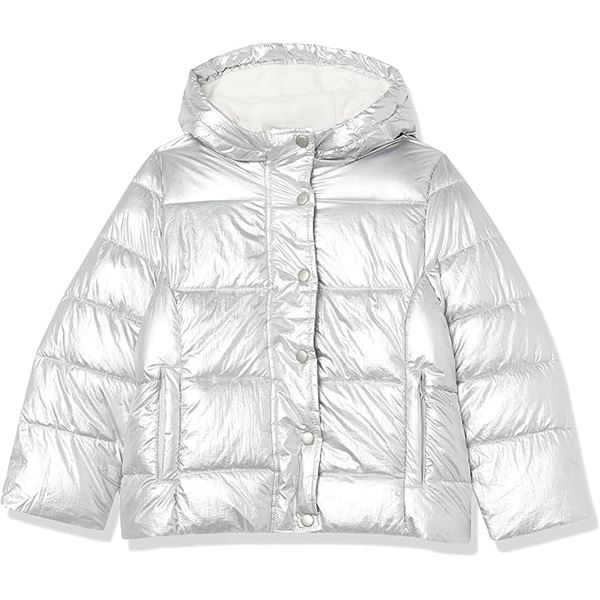 LINED HOODED PUFFER COAT, METALLIC, AMZ SES