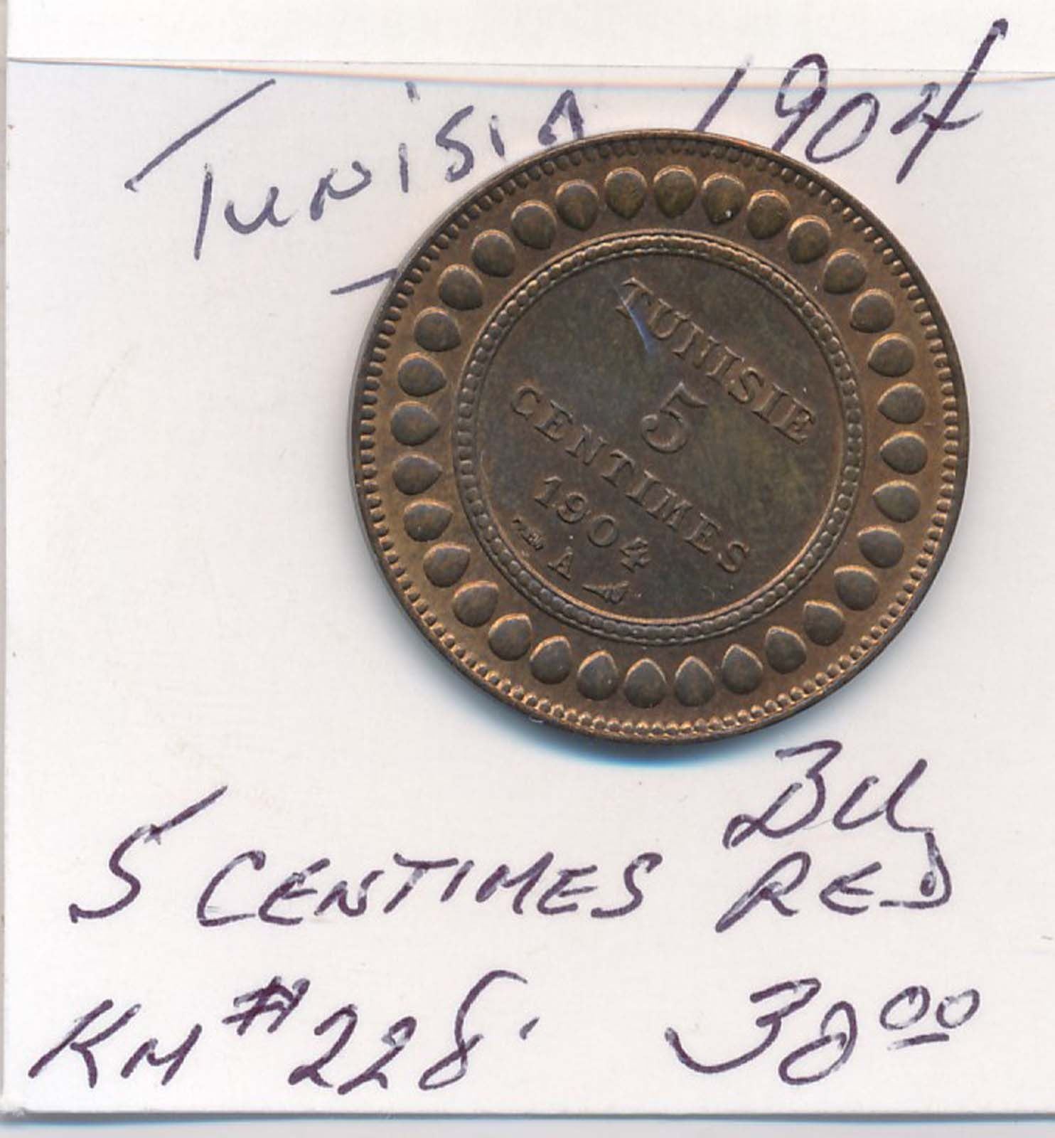 Lot of coins 1921-1954 9 coin mixed denominations highlighted by 1904 KM #228 5 centimes in Red UNC.