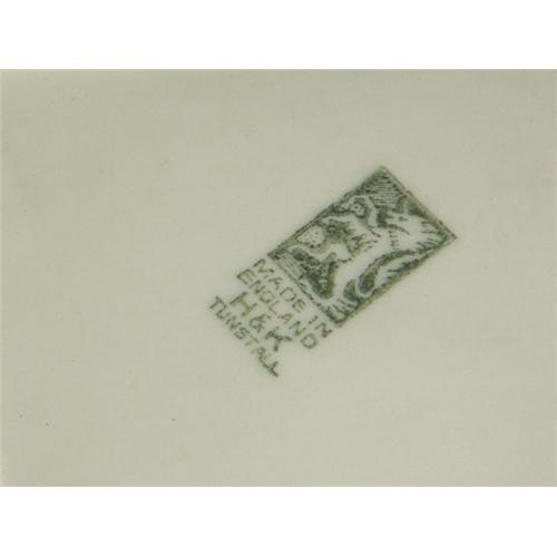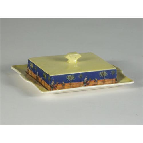 H&K Tunstall orientalist transferware pattern covered butterdish. Note chips. 6'' x 6.75''4