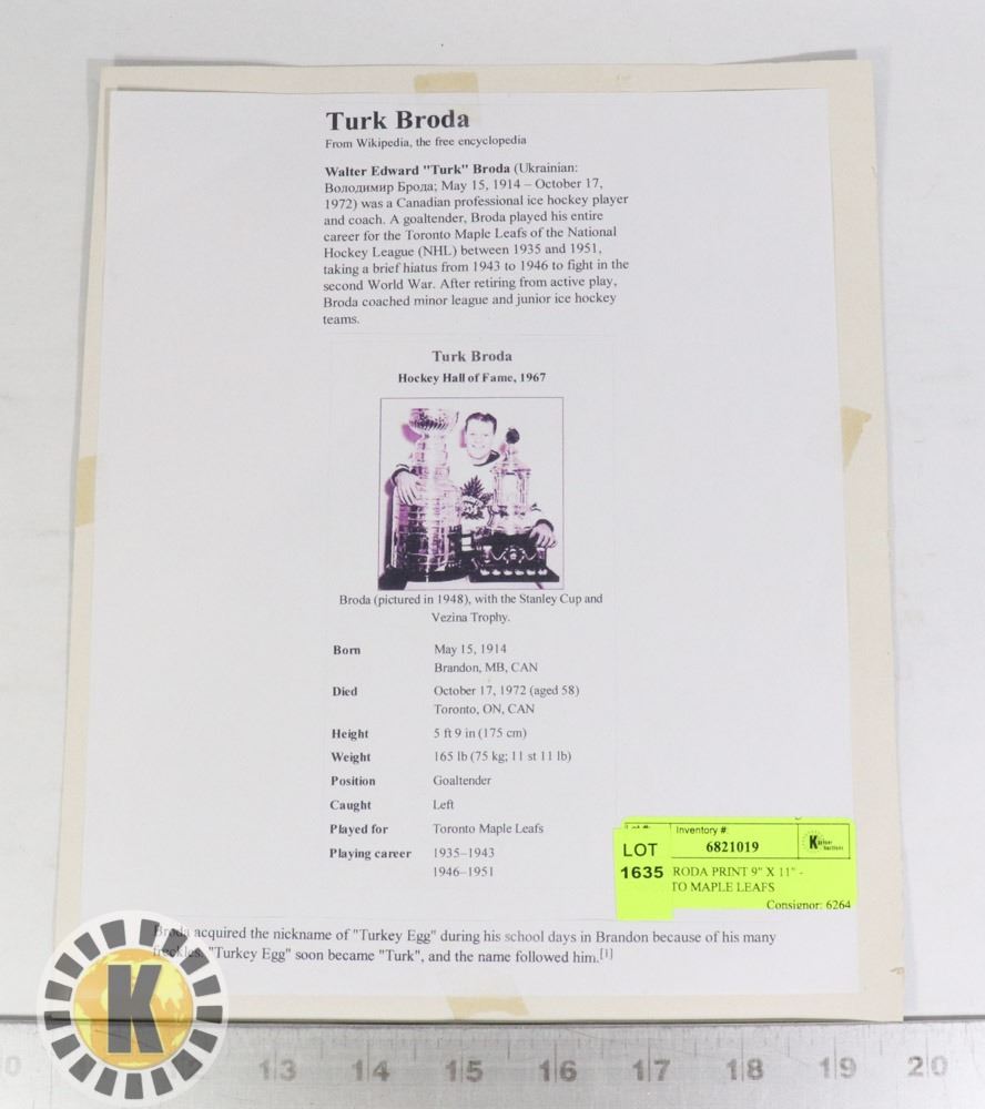 TURK BRODA PRINT 9" X 11" - TORONTO MAPLE LEAFS