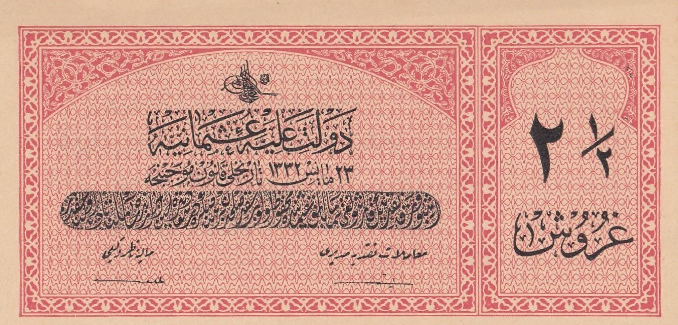 Turkey, Ottoman Empire, 2 1/2 Kurush, 1916, UNC, p86b, Talat / Rasid