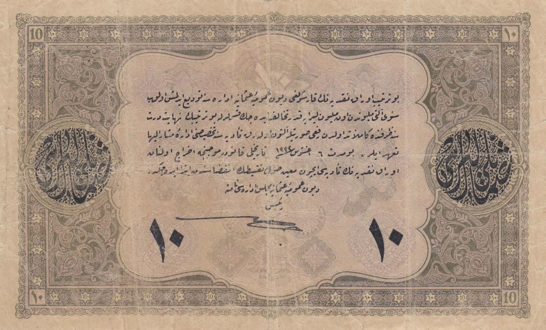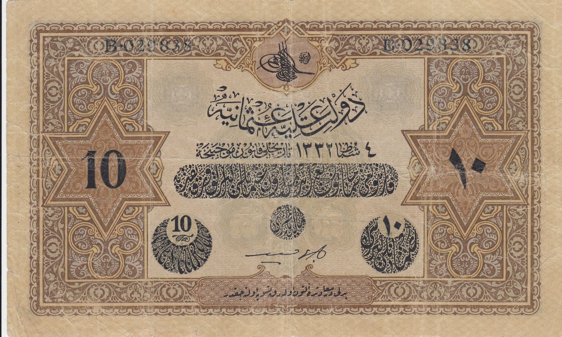 Turkey, Ottoman Empire, 10 Lira, 1917, VF, p101, Cavid / Hüseyin Cahid