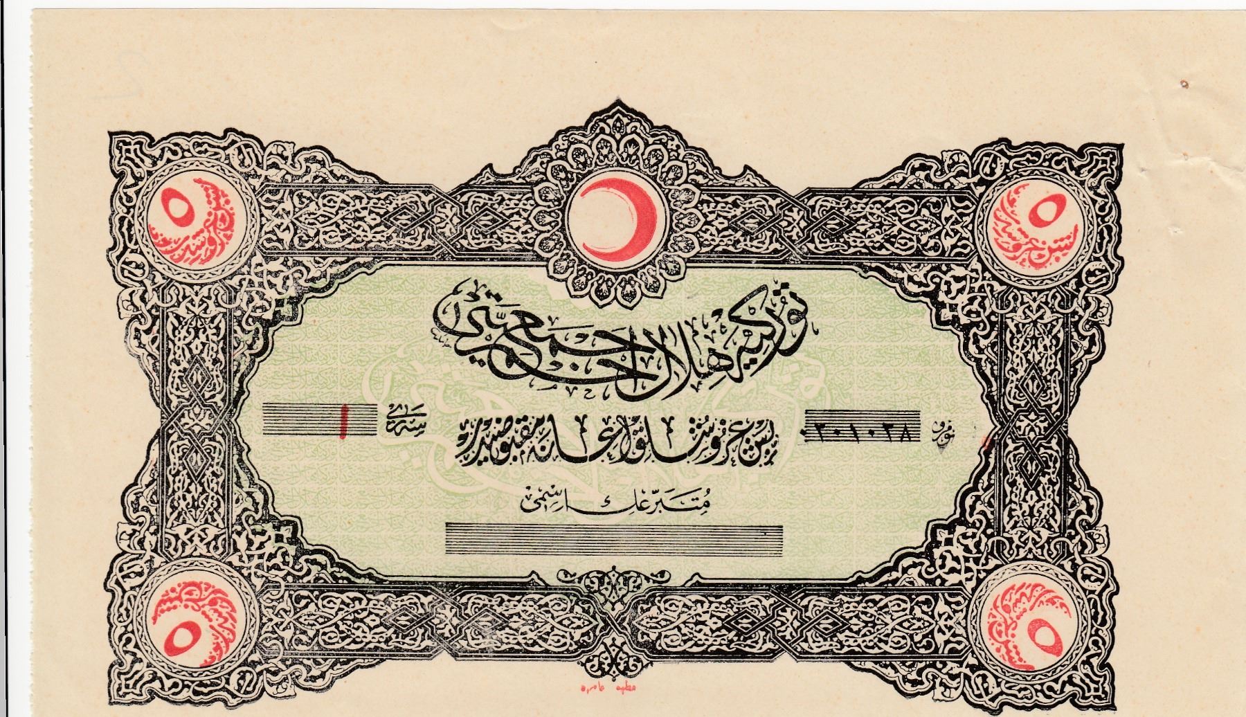 Turkey, Ottoman Empire, Hilali Ahmer Cemiyeti aid receipt, 5 Kurush, UNC (-)