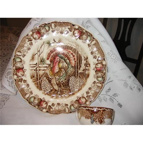 VIBRANT COLORS WITH BEAUTIFUL TURKEY IN THE CENTER, NO FLAWS PLATE IS 10 .5" CUP IS 3 1/2"