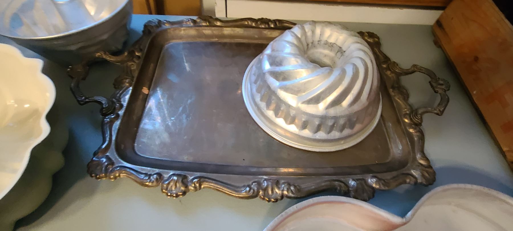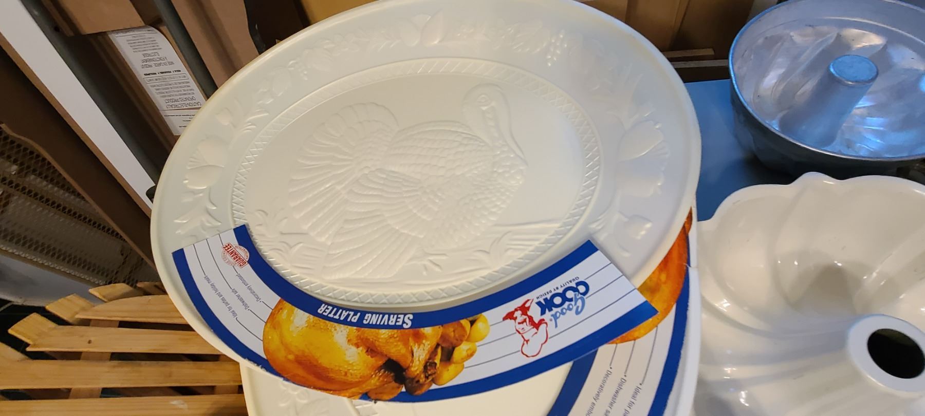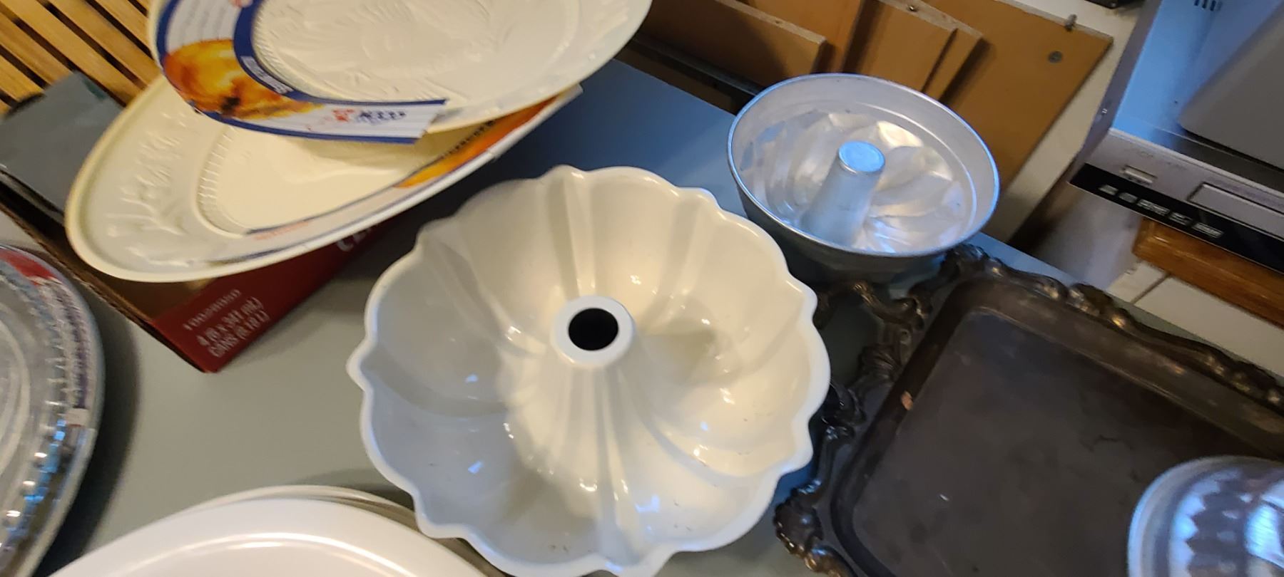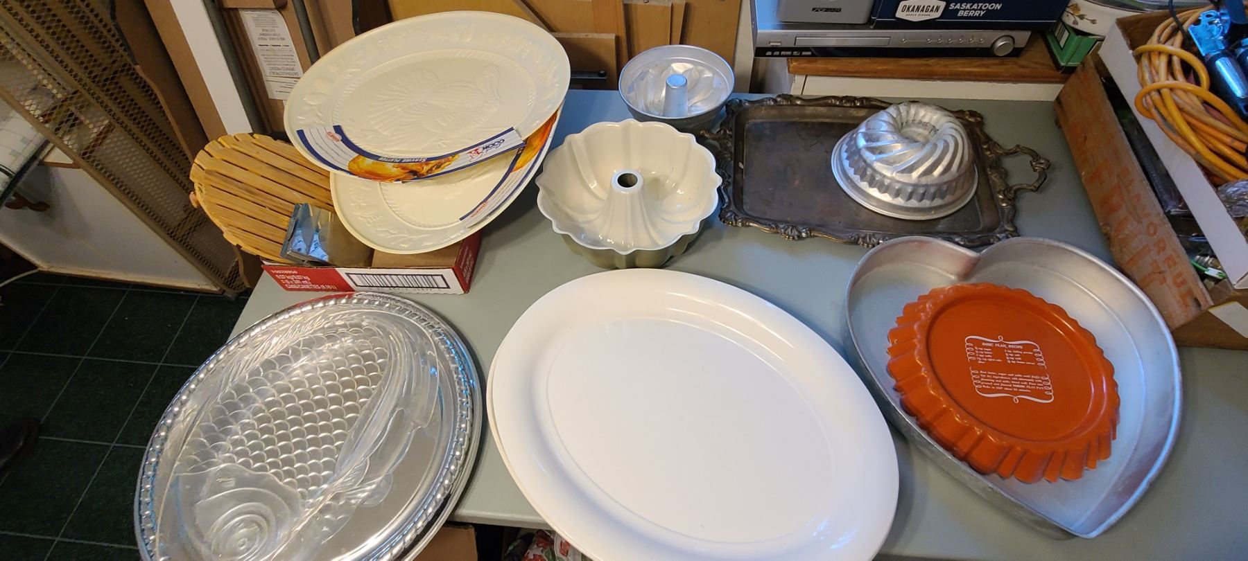 TURKEY PLATERS/CAKE & BUNDT PANS/JELLO FORMS. See photos.