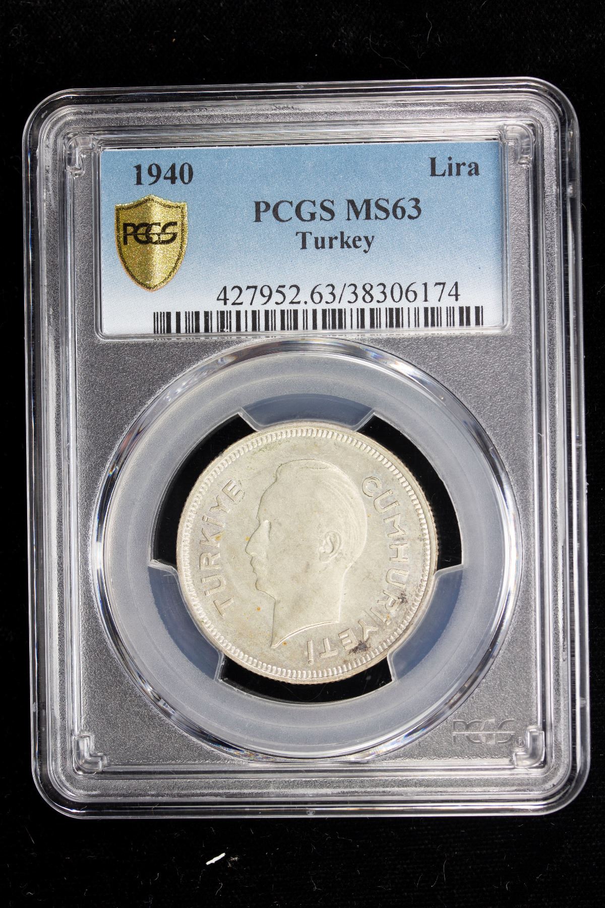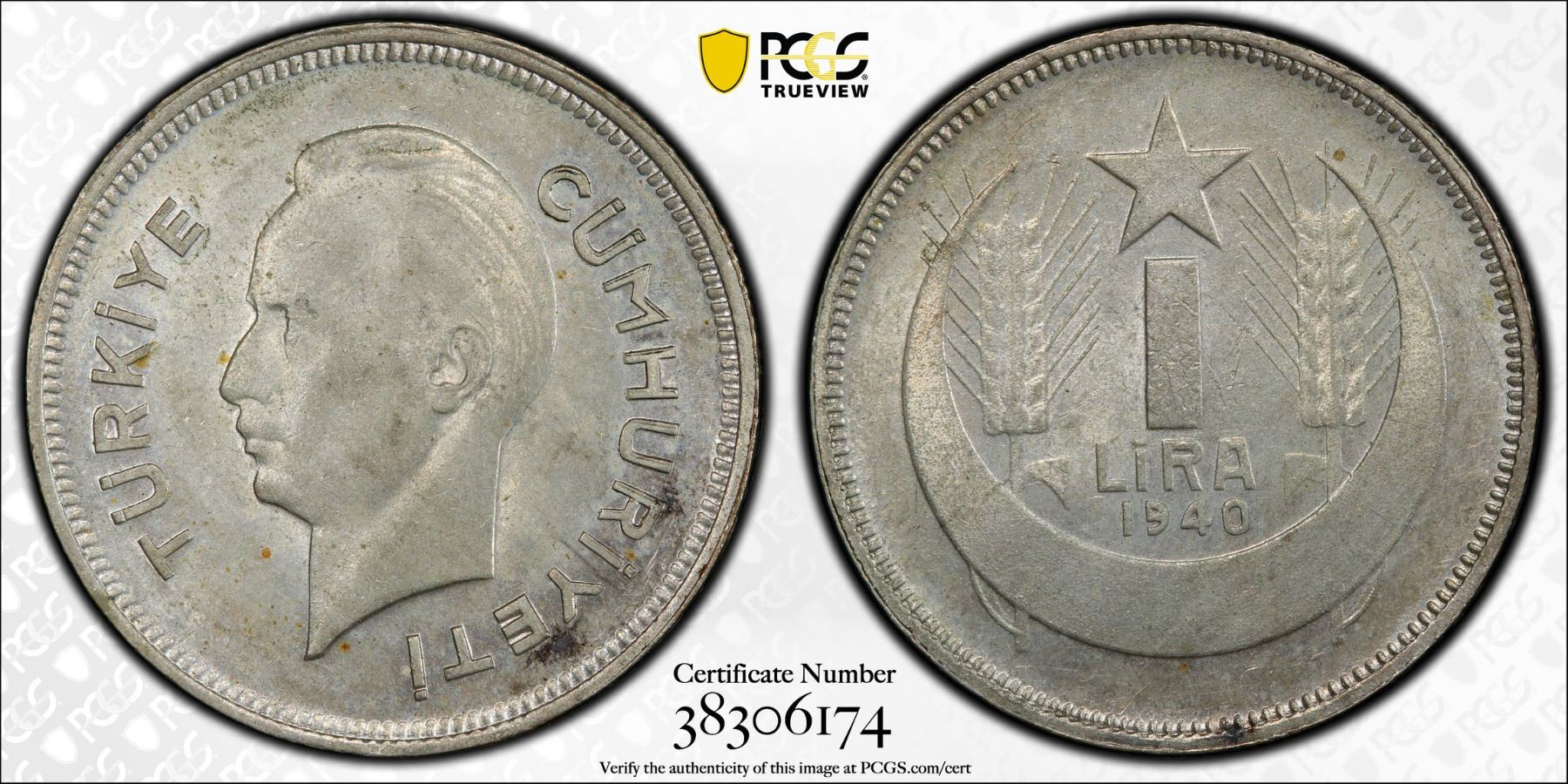 TURKEY: Republic, AR lira, 1940, KM-869, bust of Kemal Ataturk left, a lovely example! PCGS graded MS63.