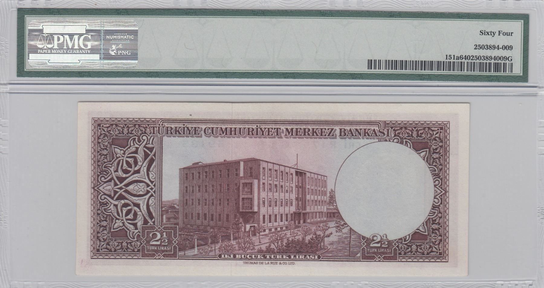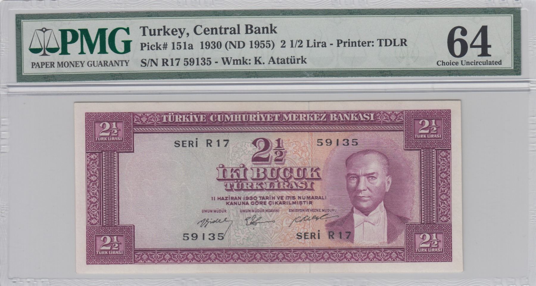 Turkey, 2 1/2 Lira, 1955, UNC, p151, 5/2. Emission