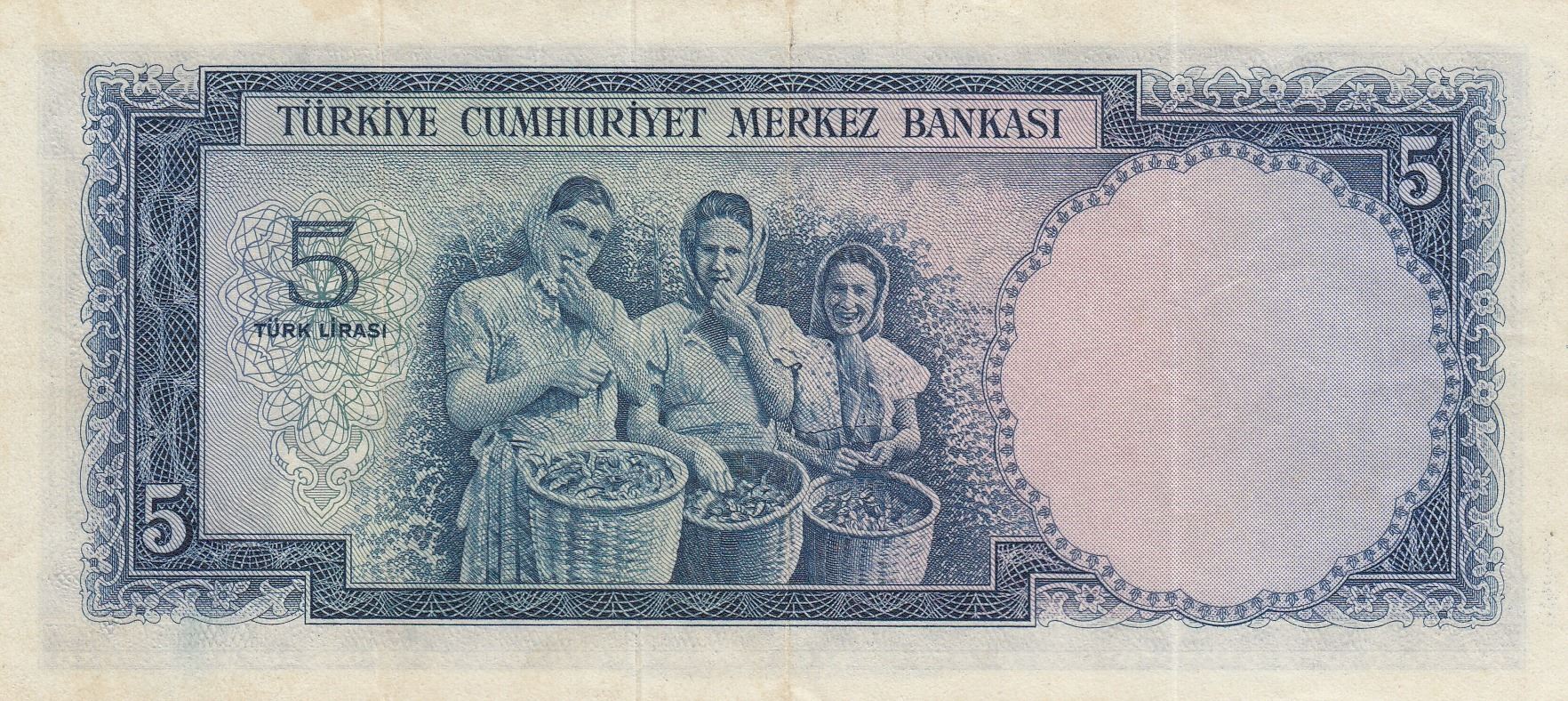 Turkey, 5 Lira, 1952, VF (+), p154, 5/1. Emission
