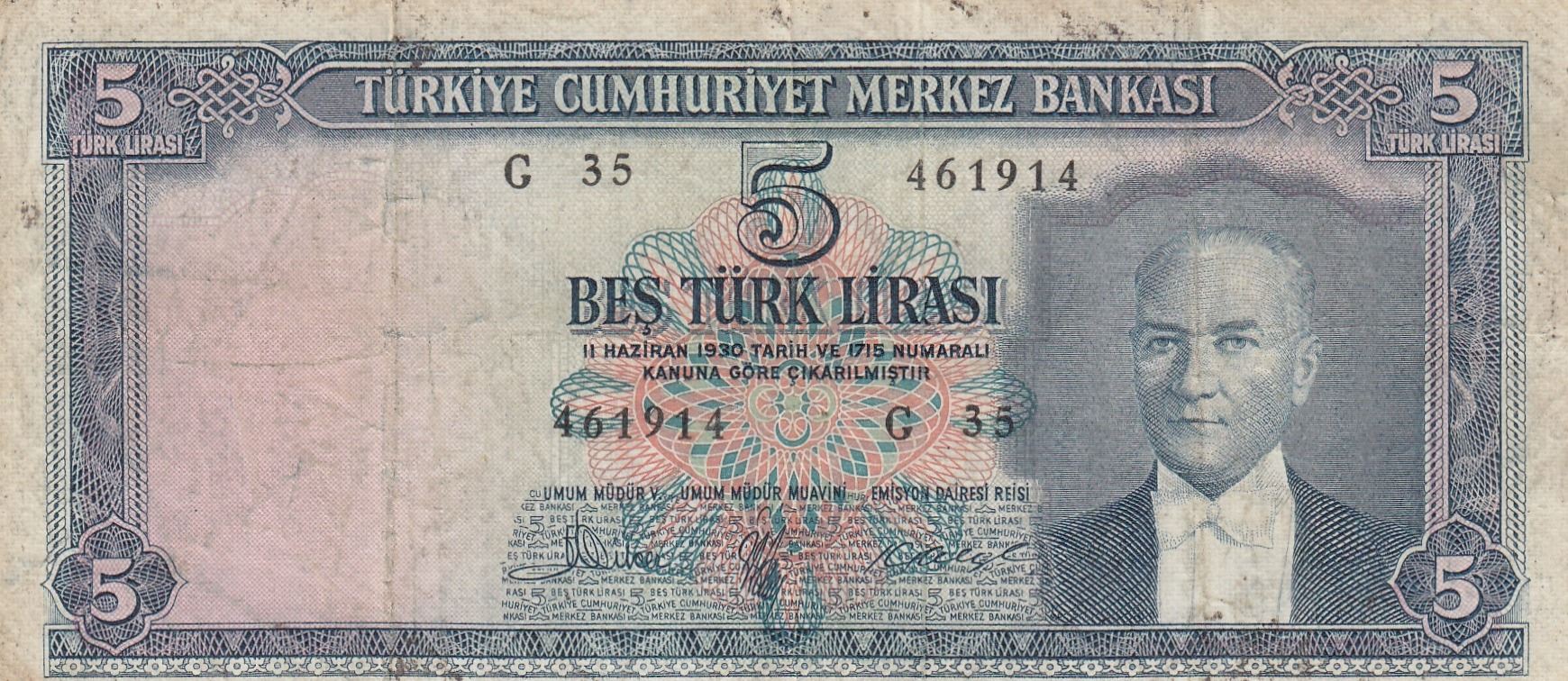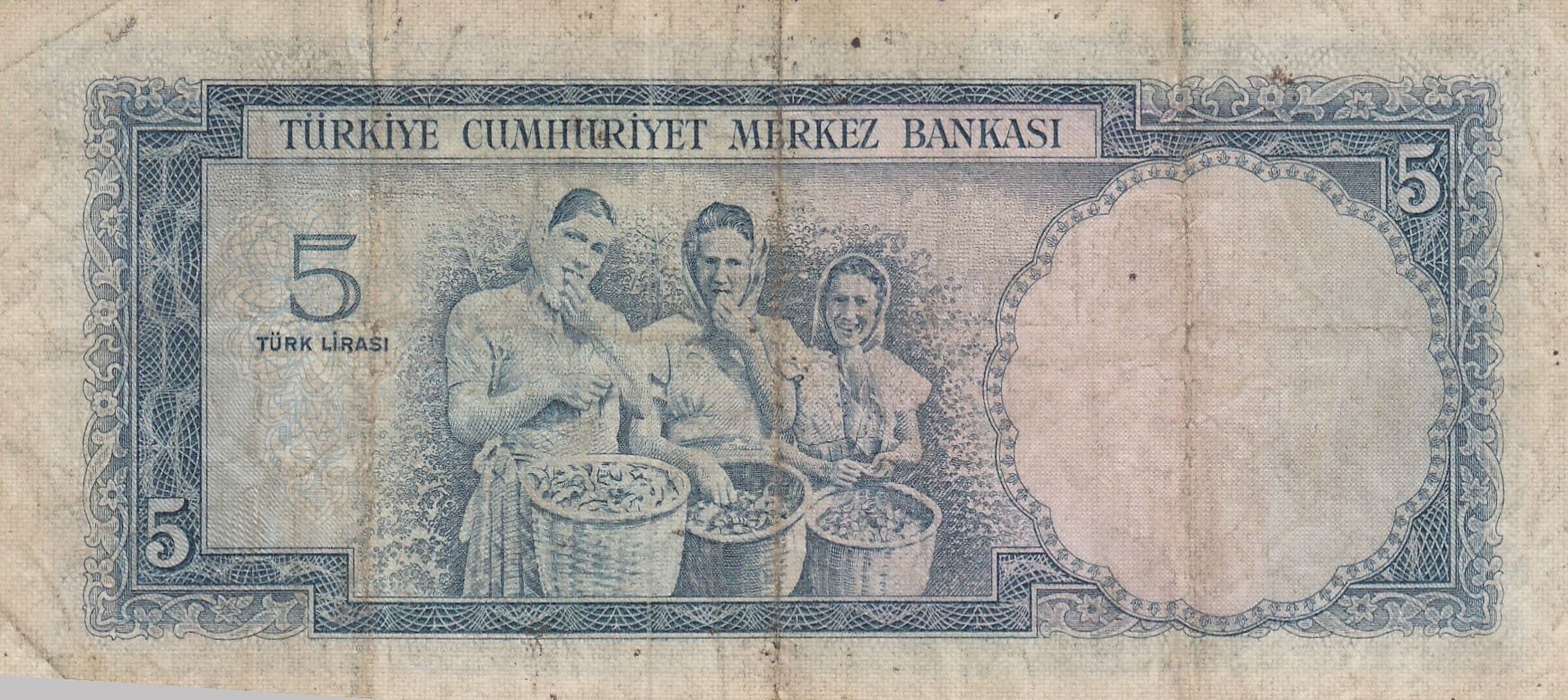 Turkey, 5 Lira, 1961, FINE, p154, 5/1. Emission