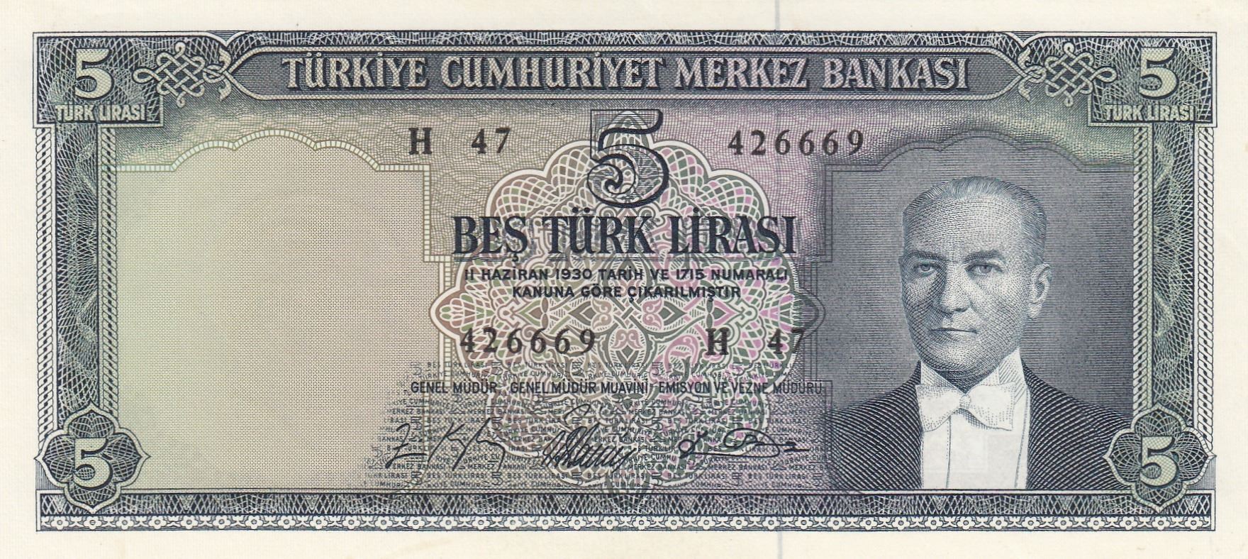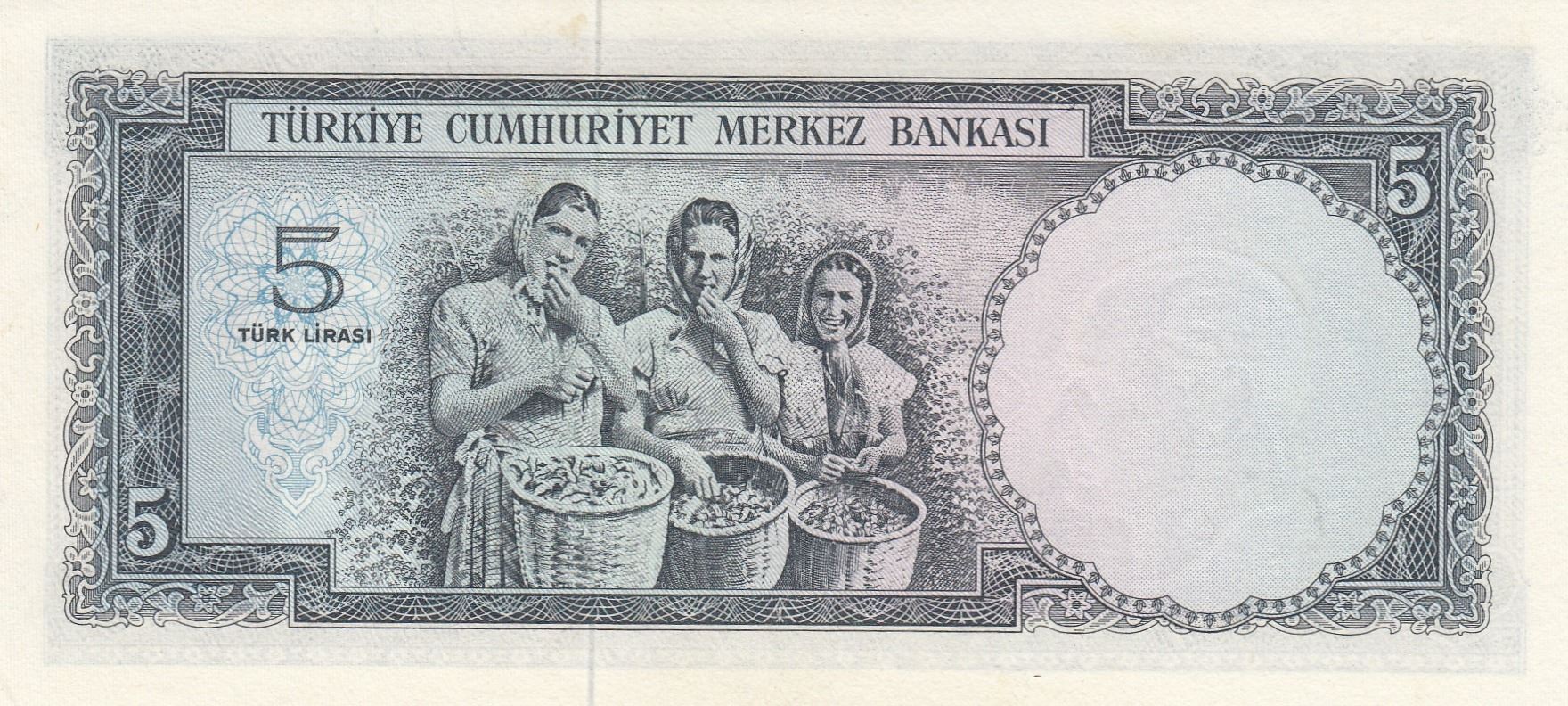 Turkey, 5 Lira, 1965, UNC, p174, 5/4. Emission