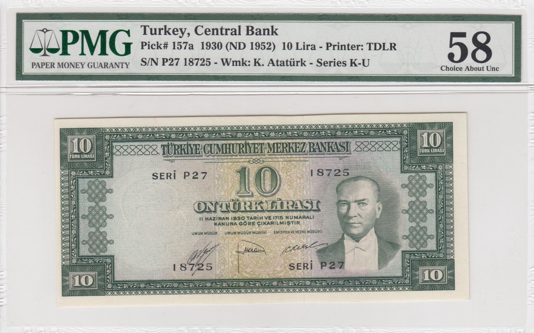Turkey, 10 Lira, 1953, AUNC (+), p157