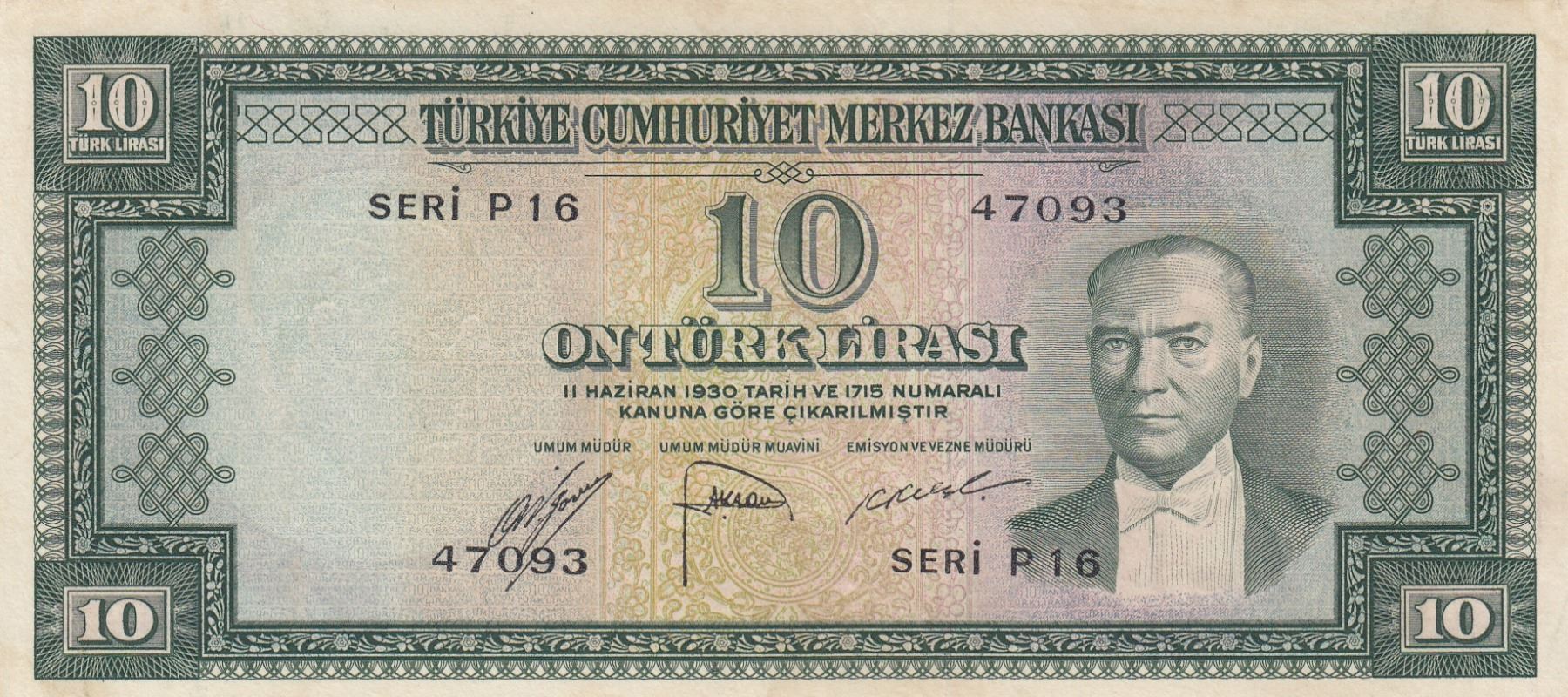 Turkey, 10 Lira, 1953, XF, p157, 5/2. Emission