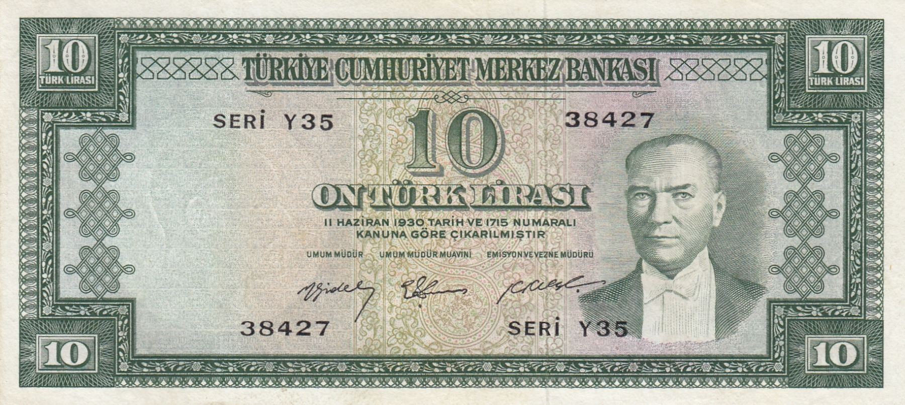 Turkey, 10 Lira, 1958, XF, p158, 5/3. Emission