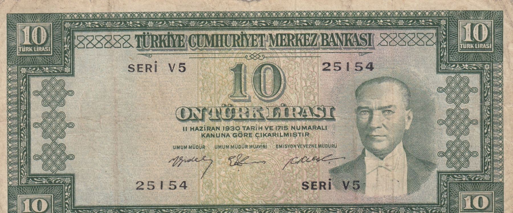 Turkey, 10 Lira, 1958, FINE, p158, 5/3. Emission