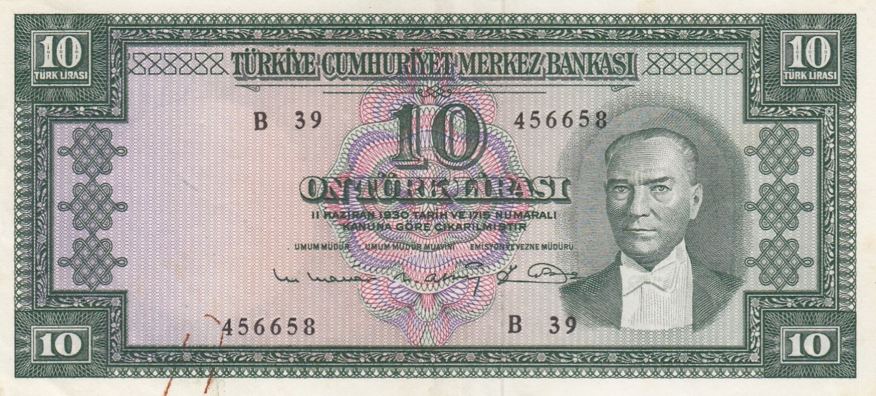 Turkey, 10 Lira, 1963, XF (+), p161, 5/6. Emission