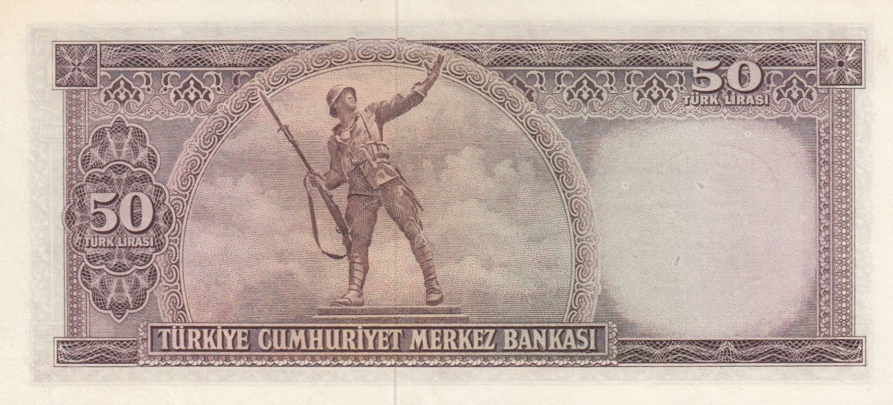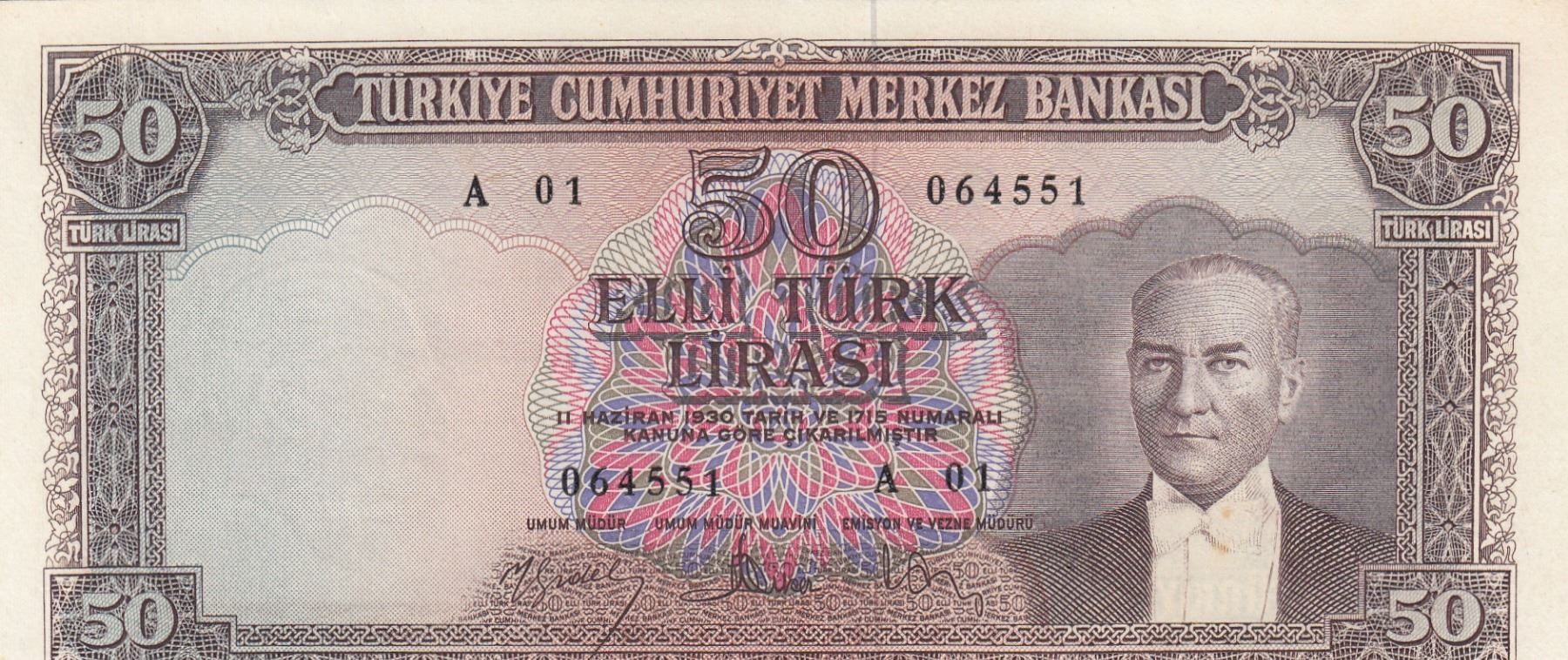 Turkey, 50 Lira, 1960, AUNC / UNC, p166, 5/5. Emission, "A01" first prefix.