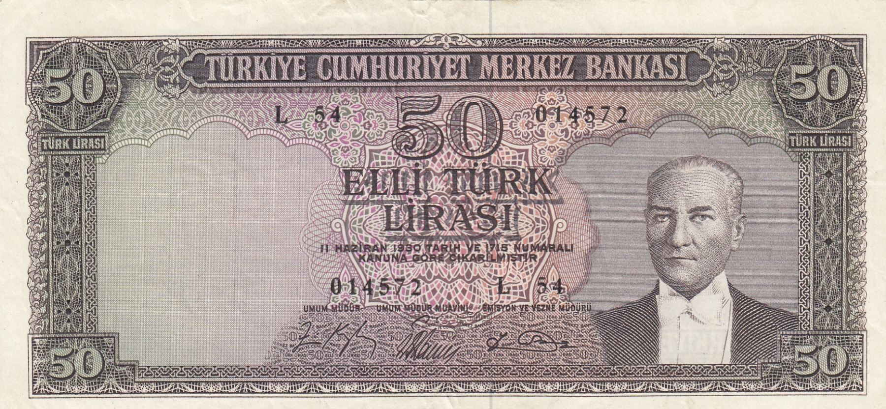 Turkey, 50 Lira, 1964, XF, p175, 5/6. Emission