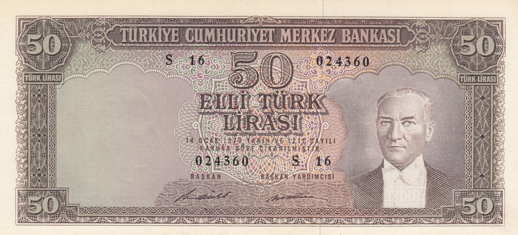 Turkey, 50 Lira, 1971, AUNC / UNC, p187A, 5/7. Emission