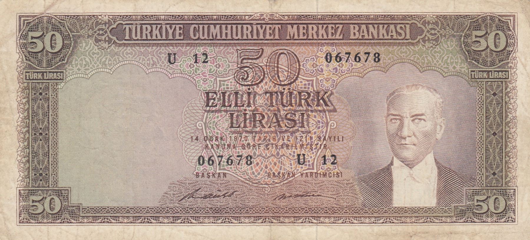 Turkey, 50 Lira, 1971, FINE, P187a, 5/7. Emission