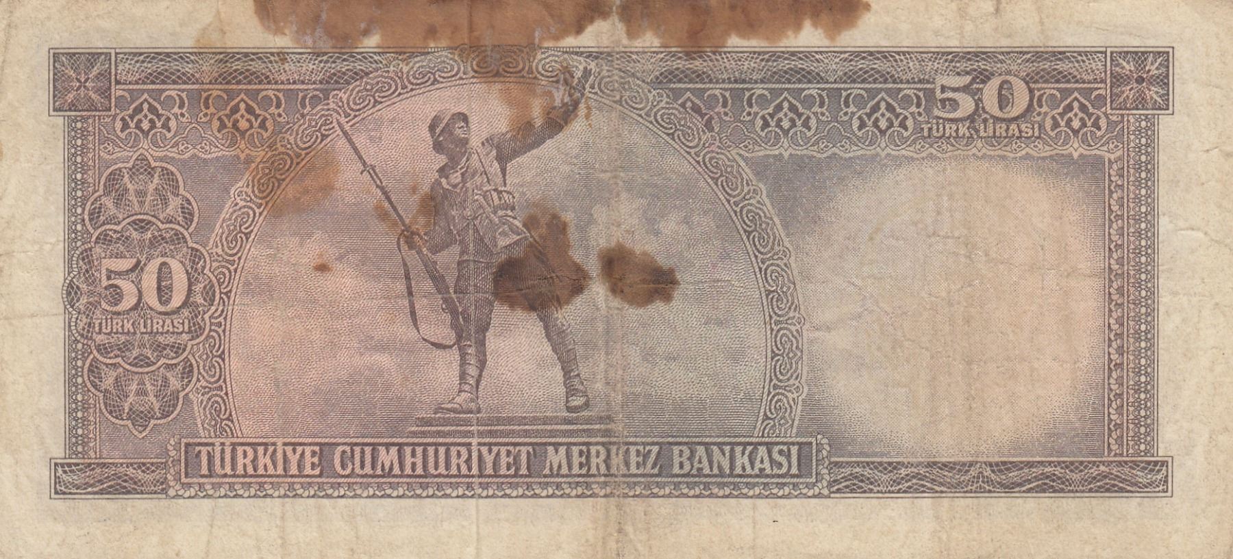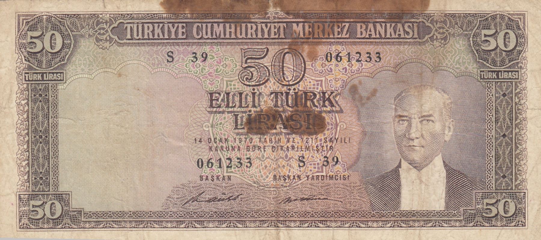 Turkey, 50 Lira, 1971, POOR, p187Aa, 5/7. Emission
