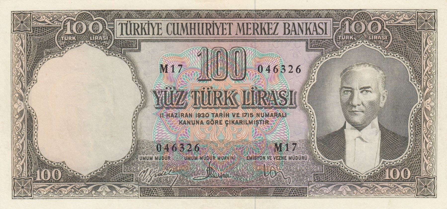 Turkey, 100 Lira, 1958, XF, p169, 5/3. Emission