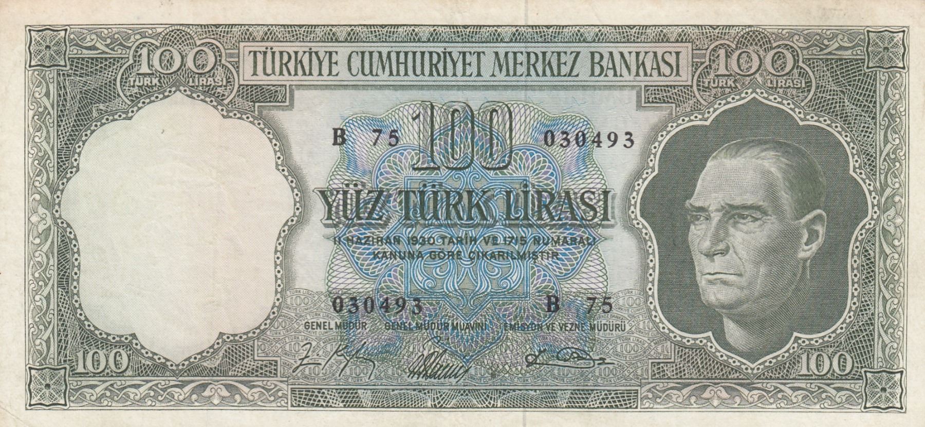 Turkey, 100 Lira, 1964, VF, p177, 5/2. Emission